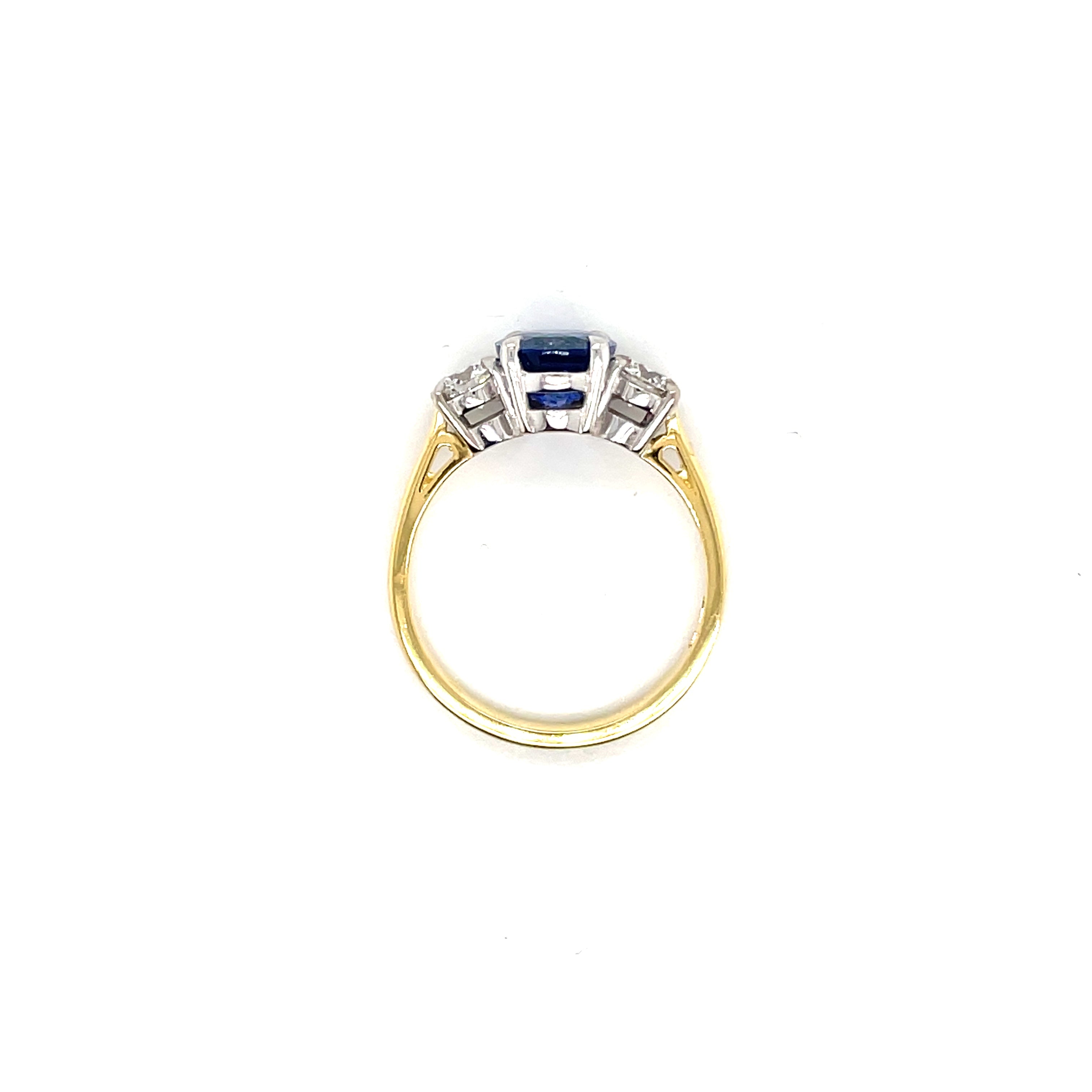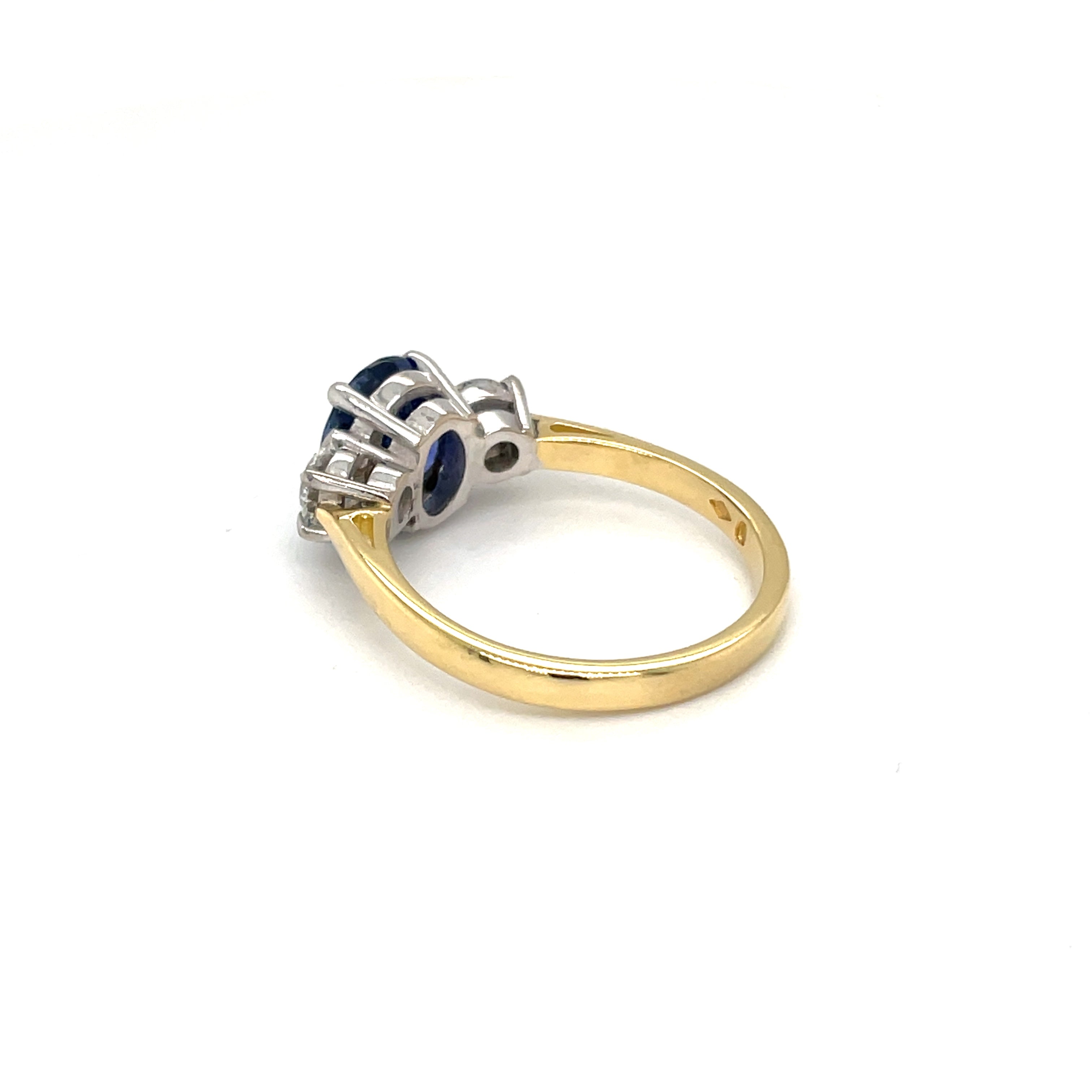 18KT GEEL & WITGOUDEN RING BEZET MET ROYAL BLUE SAFFIER & DIAMANT