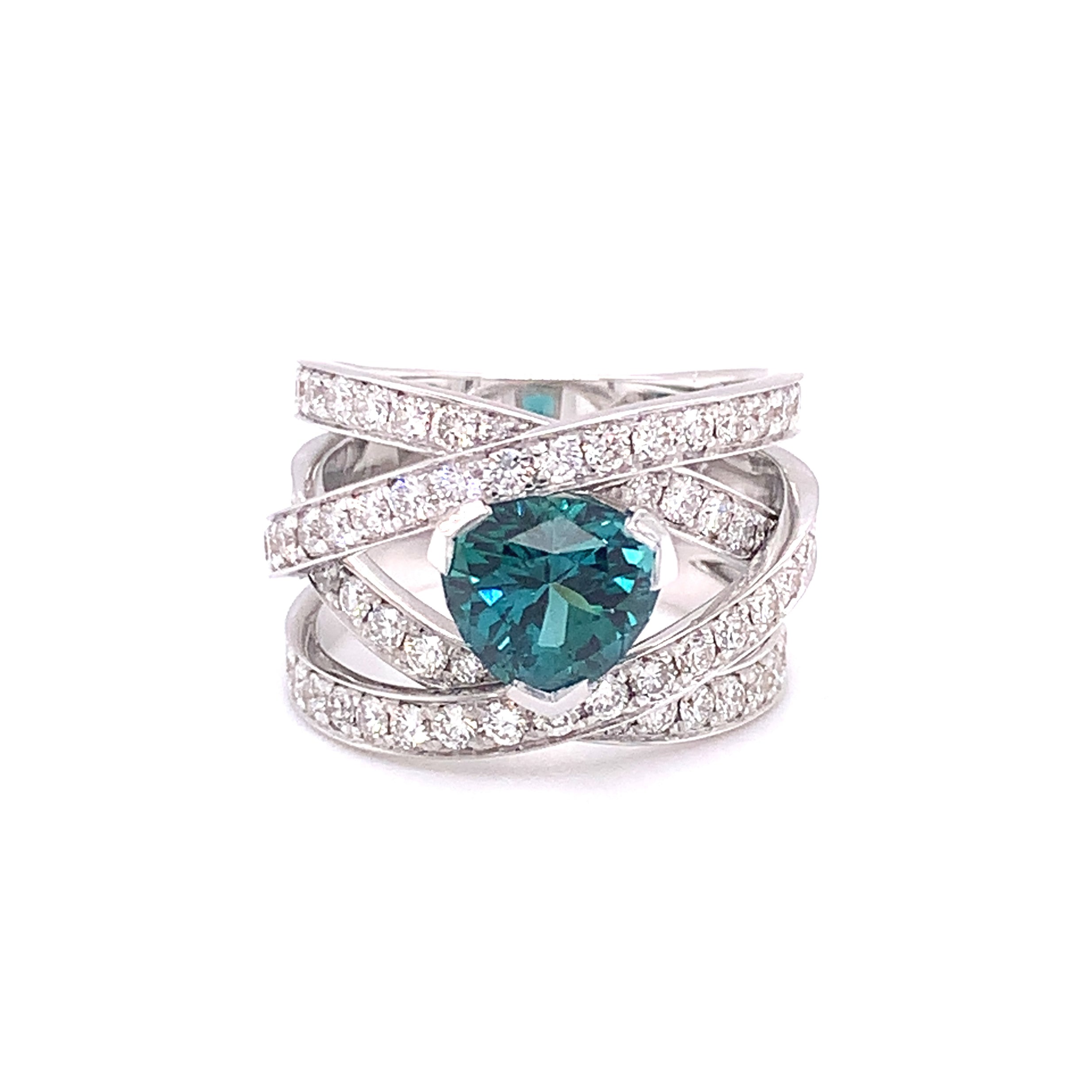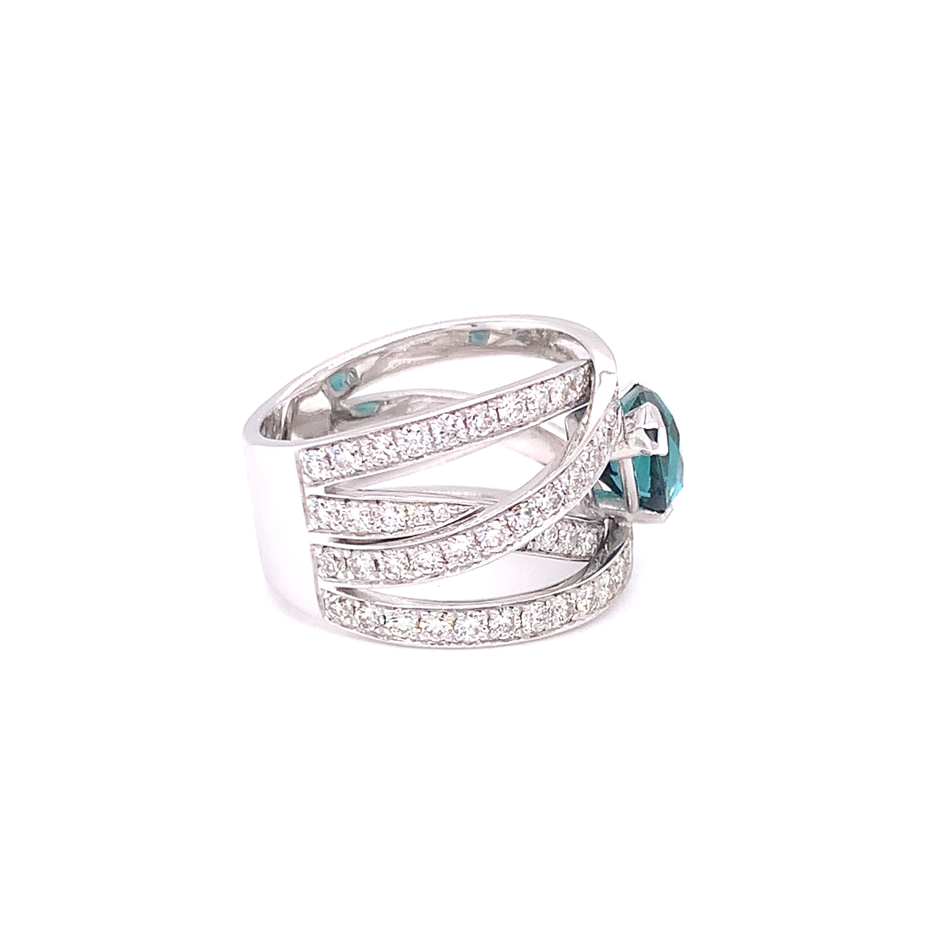 18kt witgouden ring bezet met indigoliet toermalijn & diamant