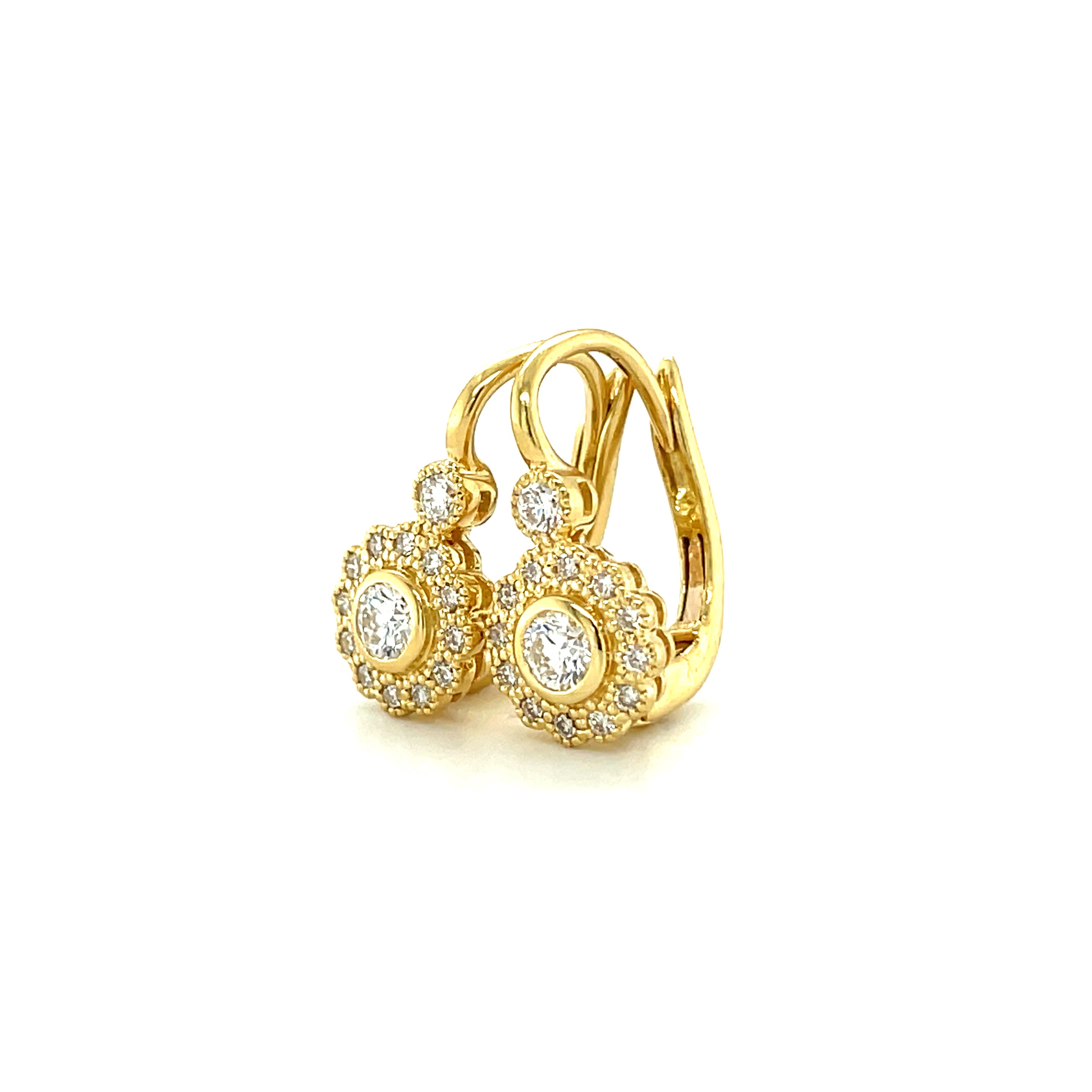 18kt geelgouden klassieke stijl oorhangers bezet met 0.48ct (4X) VS1 G briljant geslepen diamant