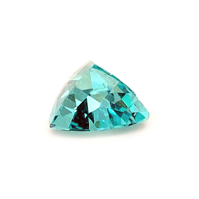 Paraïba toermalijn van 1,97 karaat in frisse neon blauwe kleur in een opvallend triangel slijpsel. Deze steen is zeer helder voor een Paraïba toermalijn. Bekijk onze juwelen voor inspiratie hoe je deze edelsteen door ons kunt laten zetten in een sieraad naar keuze.