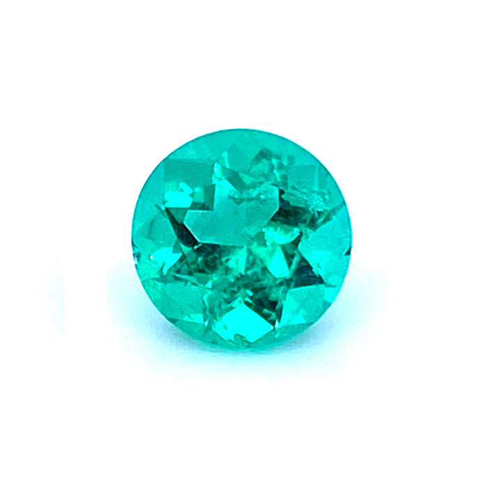 Bijzondere smaragd met een frisse groene kleur. Smaragd wordt zelden rond geslepen vanwege de kwetsbaarheid. Deze steen is door de weinige insluitsels daar wel geschikt voor. Deze steen komt uit de jungle van Colombia, de vindplaats van s'werelds beste smaragd.