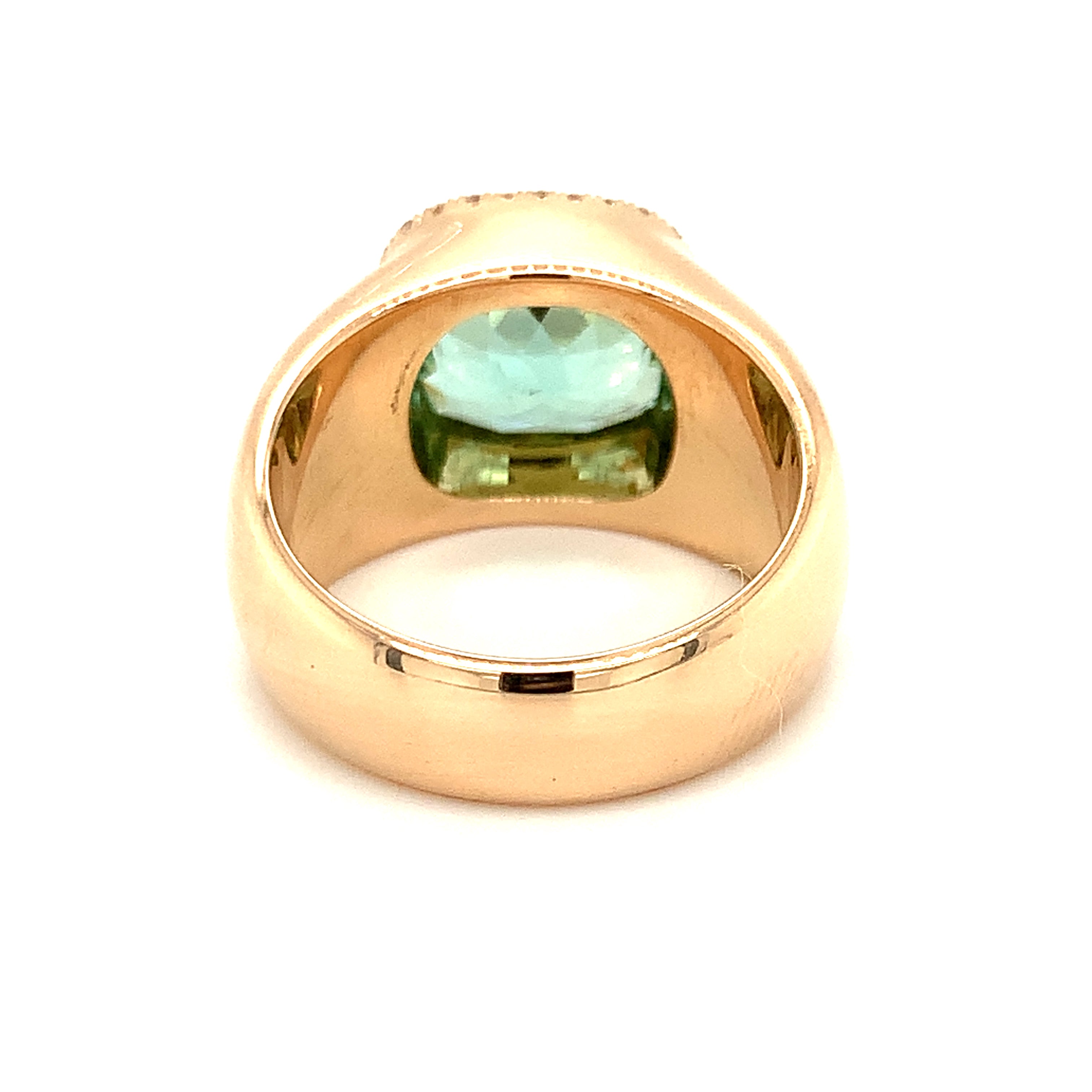Deze met hand vervaardigde 18kt roségouden ring is bezet met een 3.45ct toermalijn & diamanten.