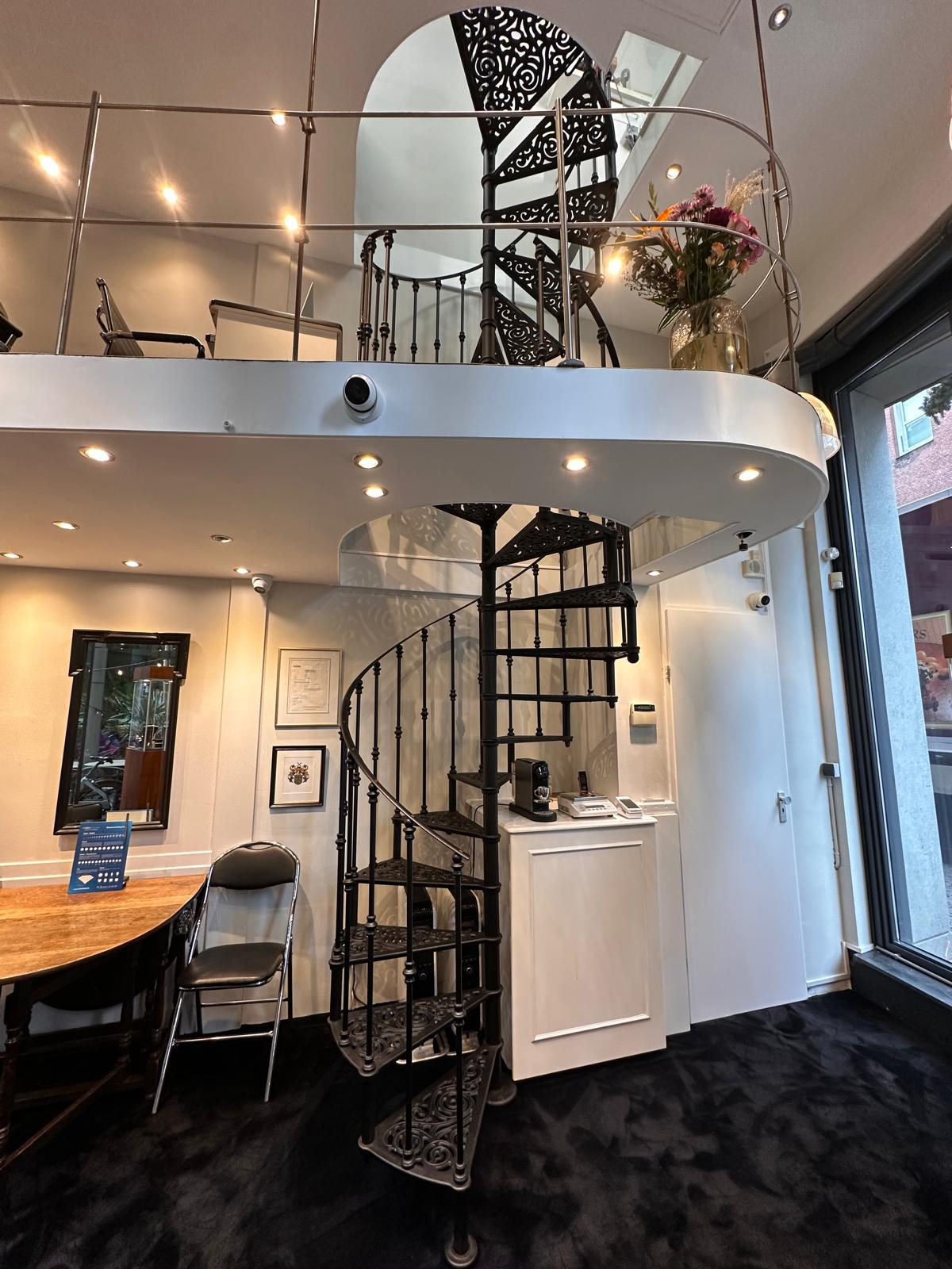 Während der Veranstaltung hat unser Geschäft eine besondere Ergänzung erhalten: eine Jugendstil-Gusseisentreppe – ein Juwel für sich, das perfekt zu unserem Stil passt. Sehen Sie sich unten das Ergebnis an: