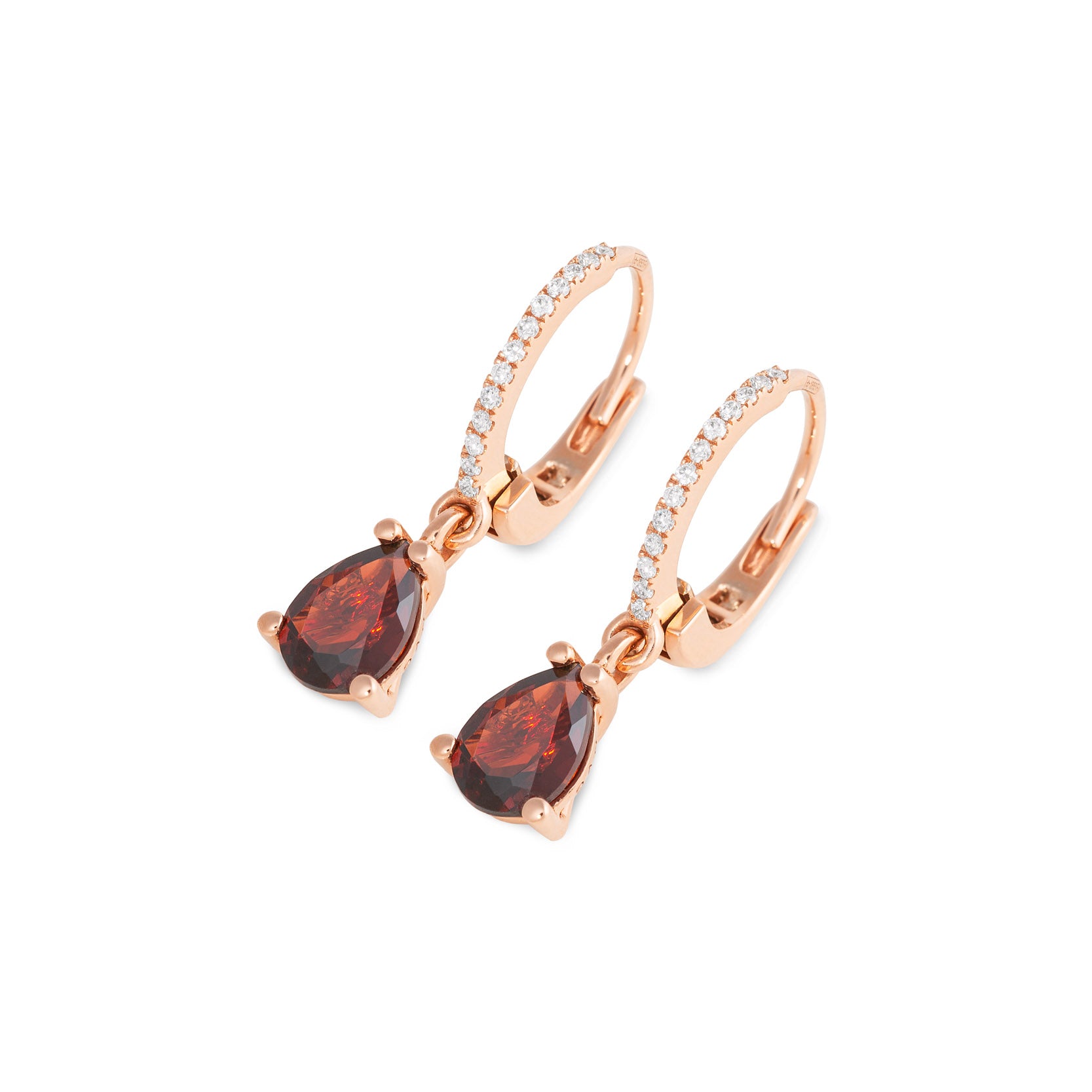 Steine: 1,7 ct Granat im Birnenschliff und Diamanten im Brillantschliff von 0,10 ct VSI G
