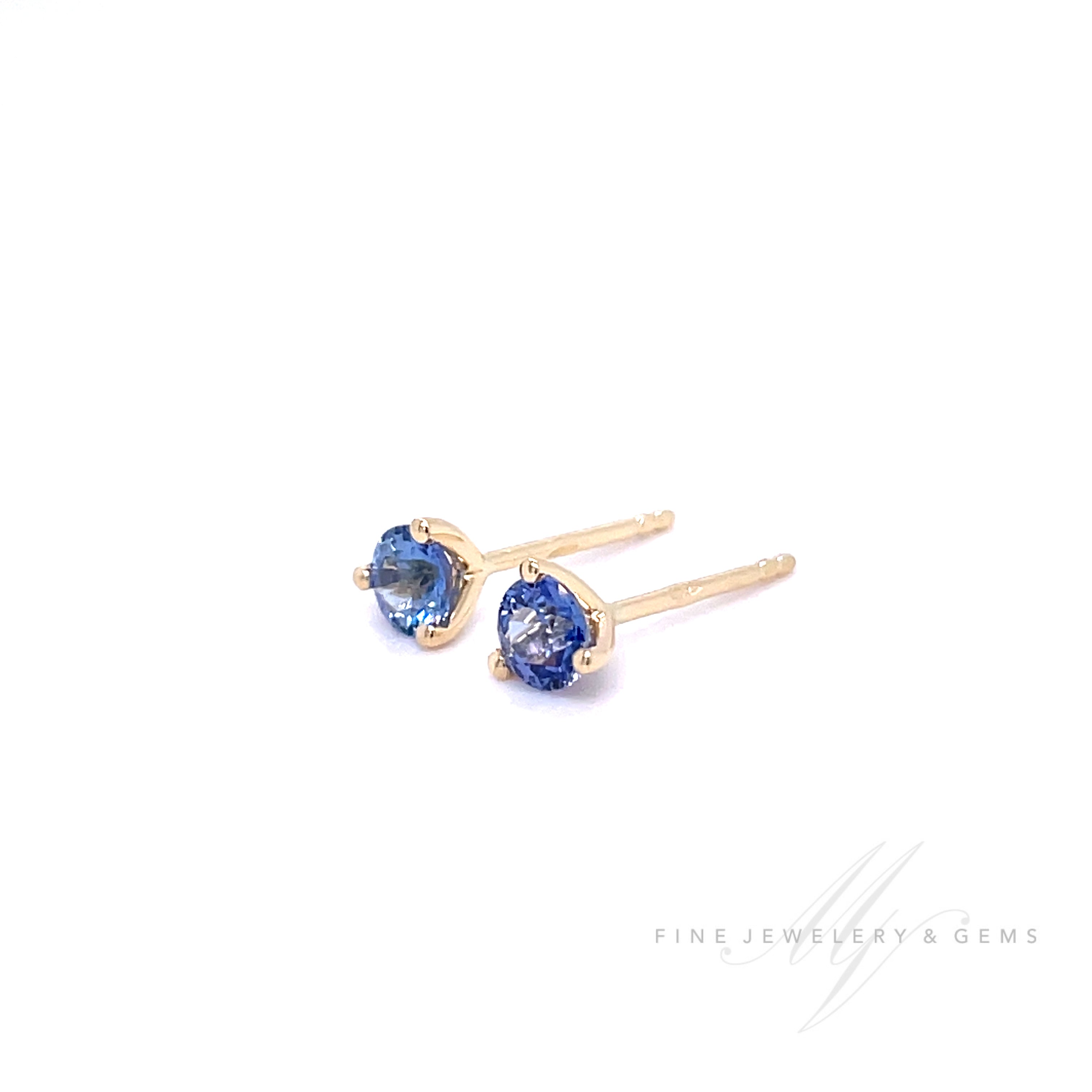 18kt yellow gold three-pronged stud earrings set with unheated sapphire found in Sri Lanka