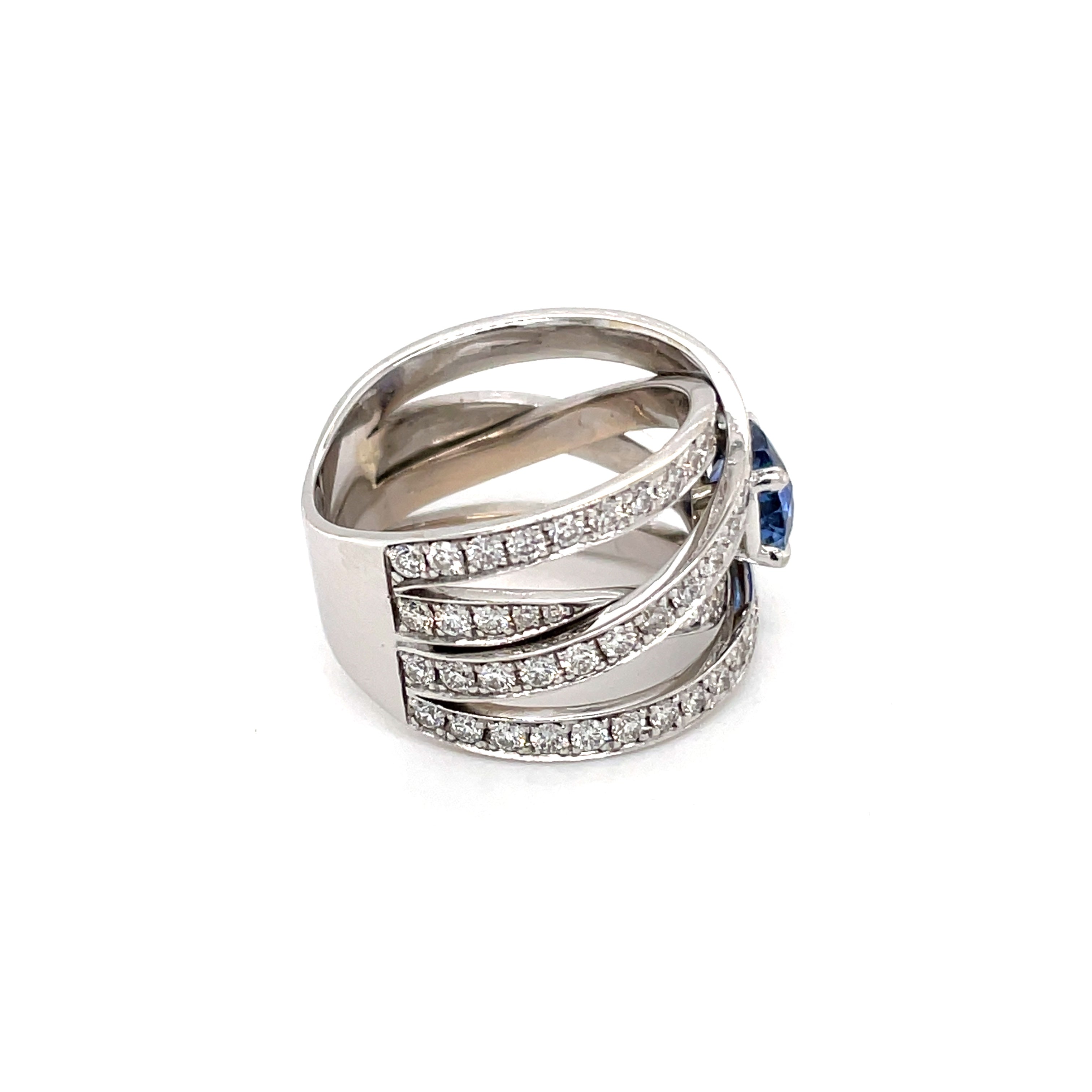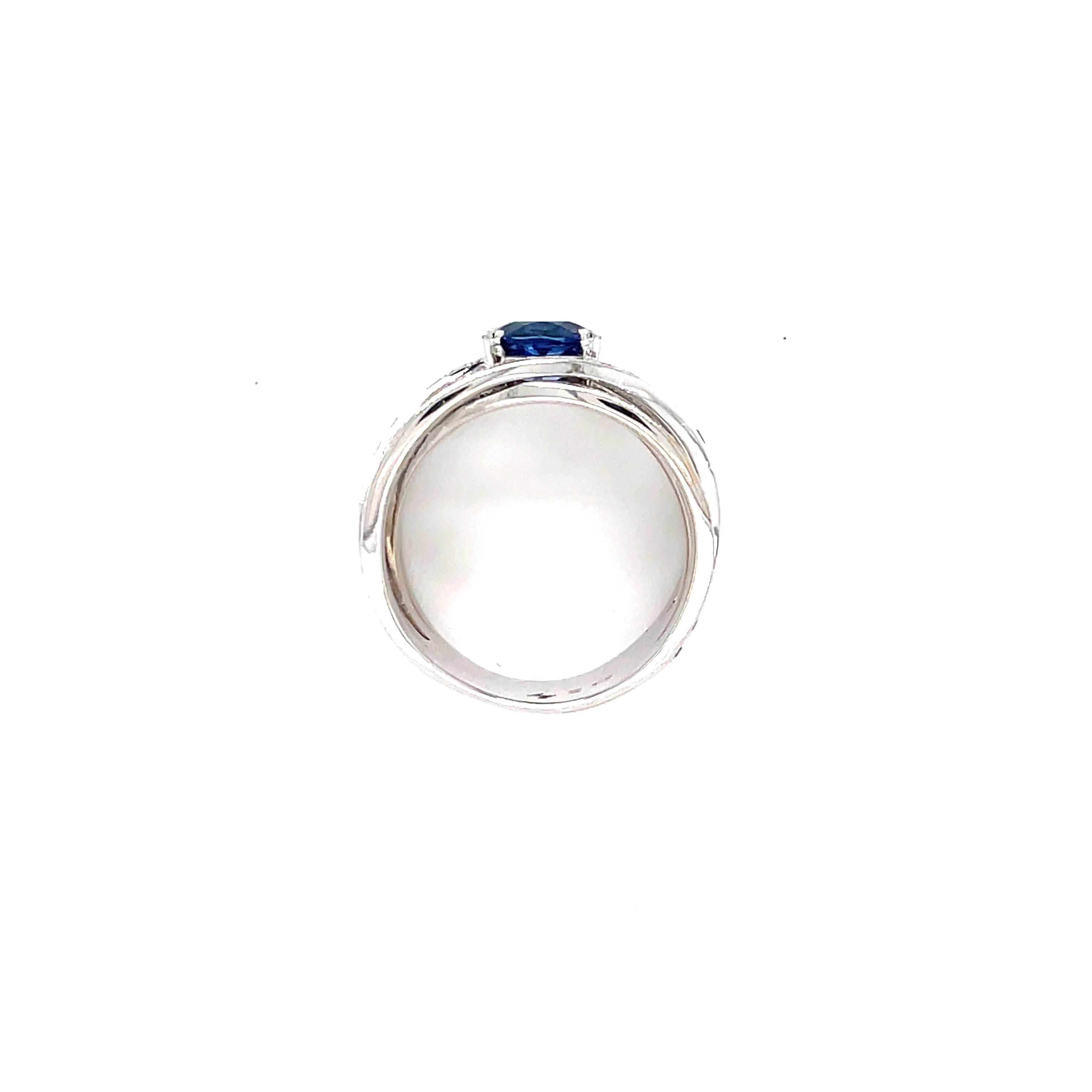 Anillo de oro blanco de 18 kt con zafiro de Ceilán y diamante engastados
