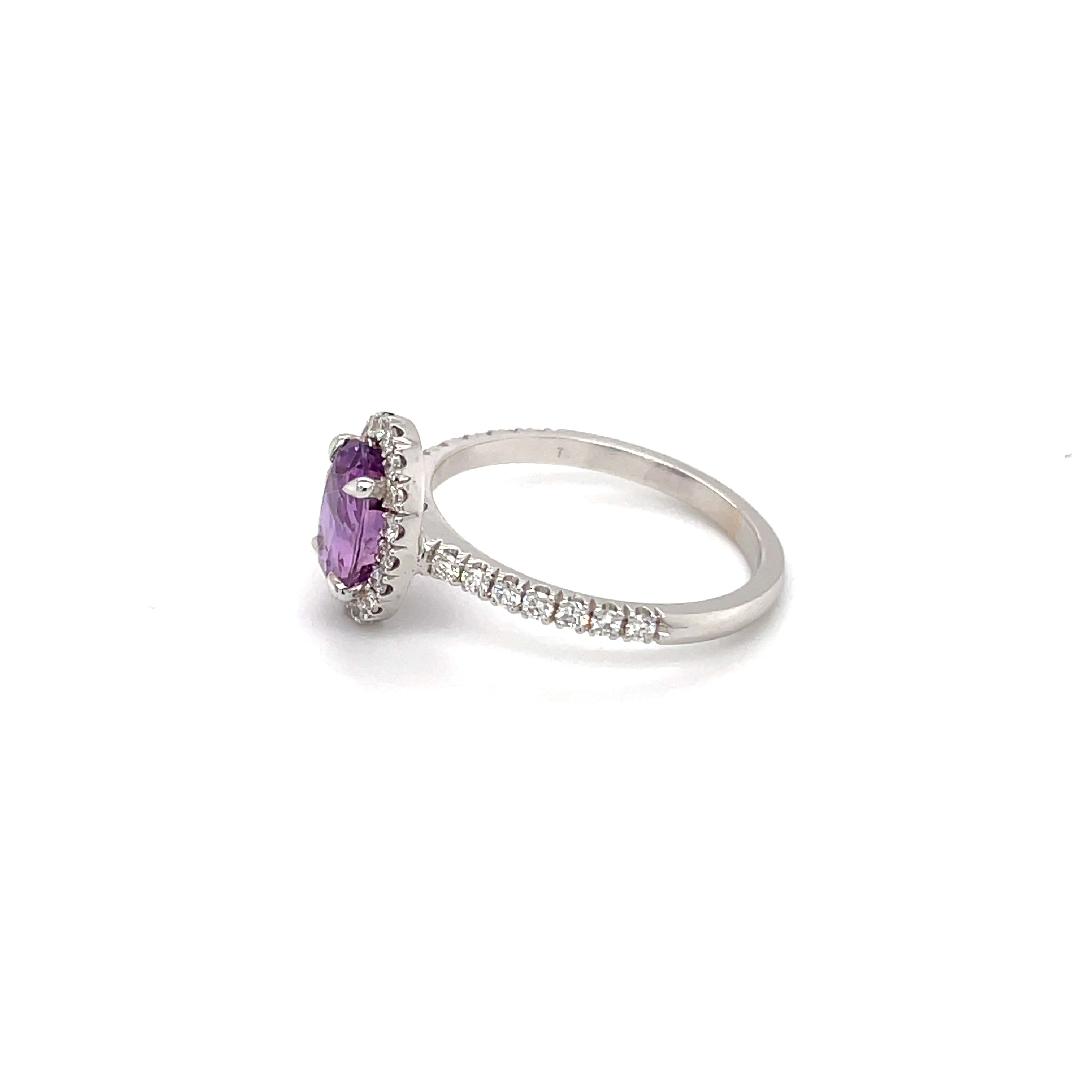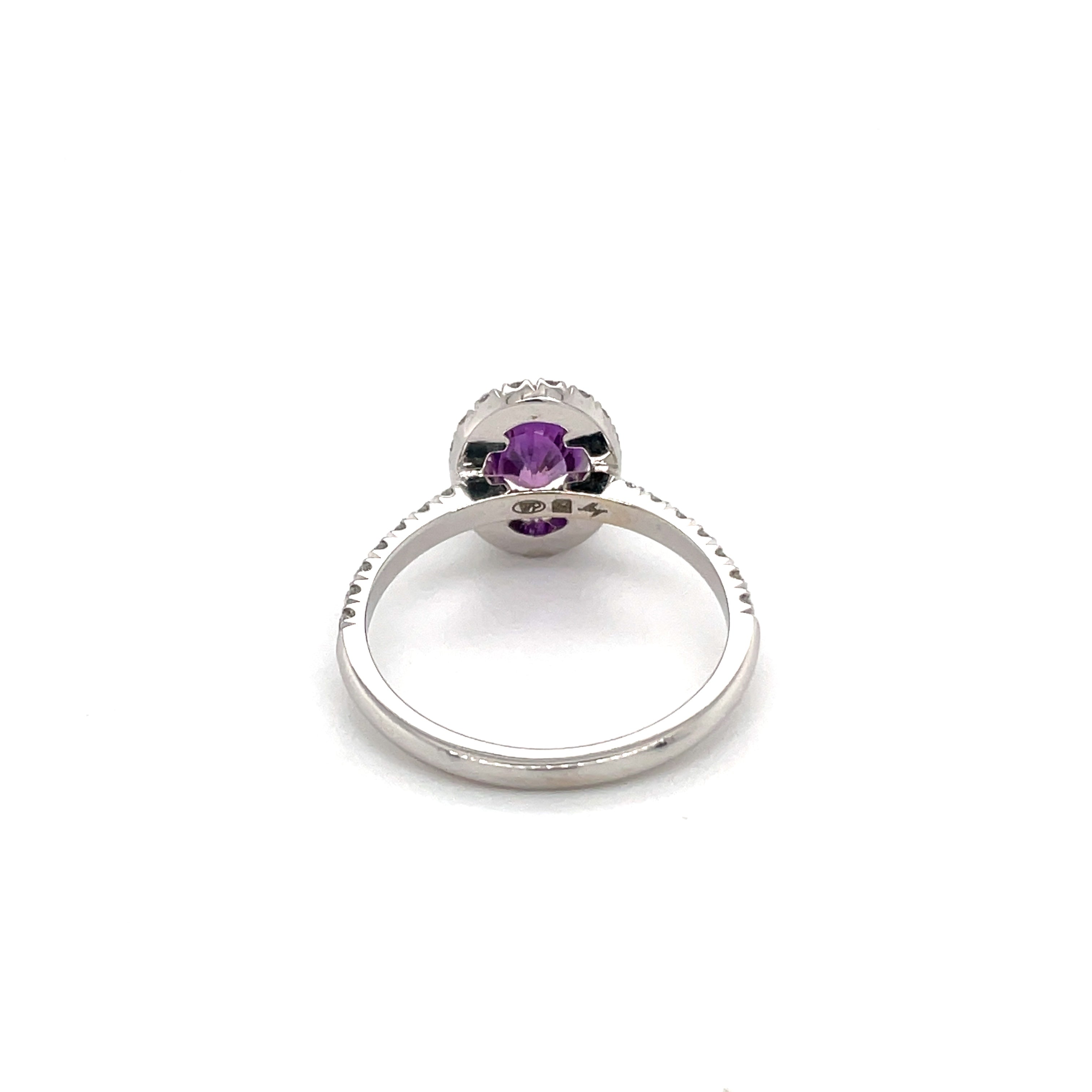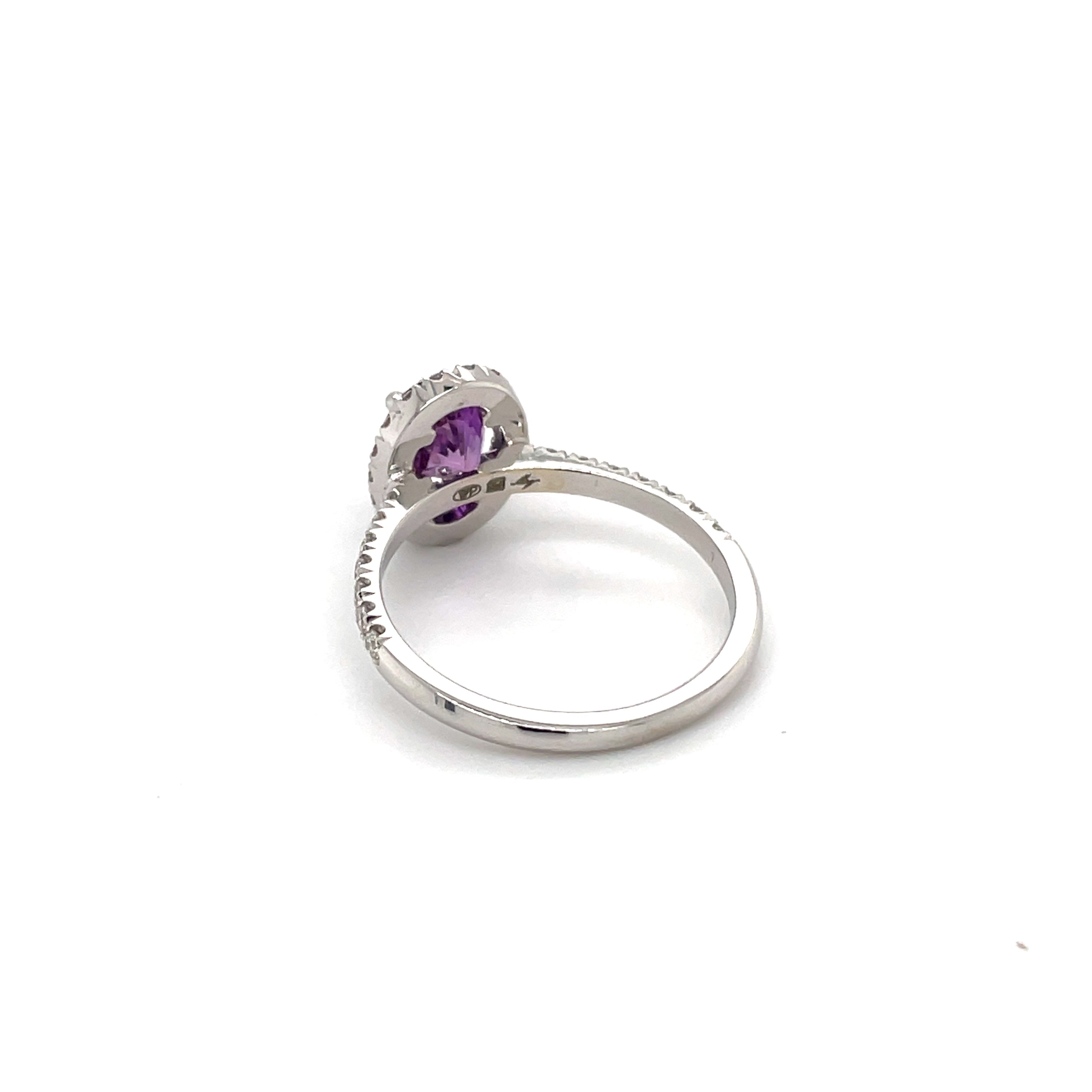 Bague en or blanc 18 carats sertie d'un saphir violet et de diamants