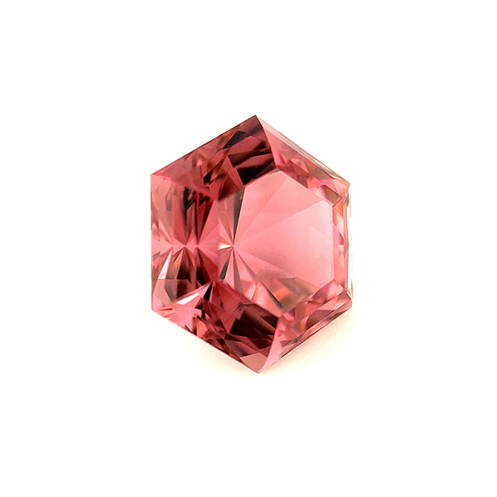 Une rubellite étincelante dans une coupe spéciale. Cela fait ressortir magnifiquement la couleur rose-rouge foncé et montre une palette vive de tons rouges. Les jungles de l'est du Brésil étaient une riche source de ces joyaux entre 1960 et 1980. Ils deviennent maintenant de plus en plus rares.