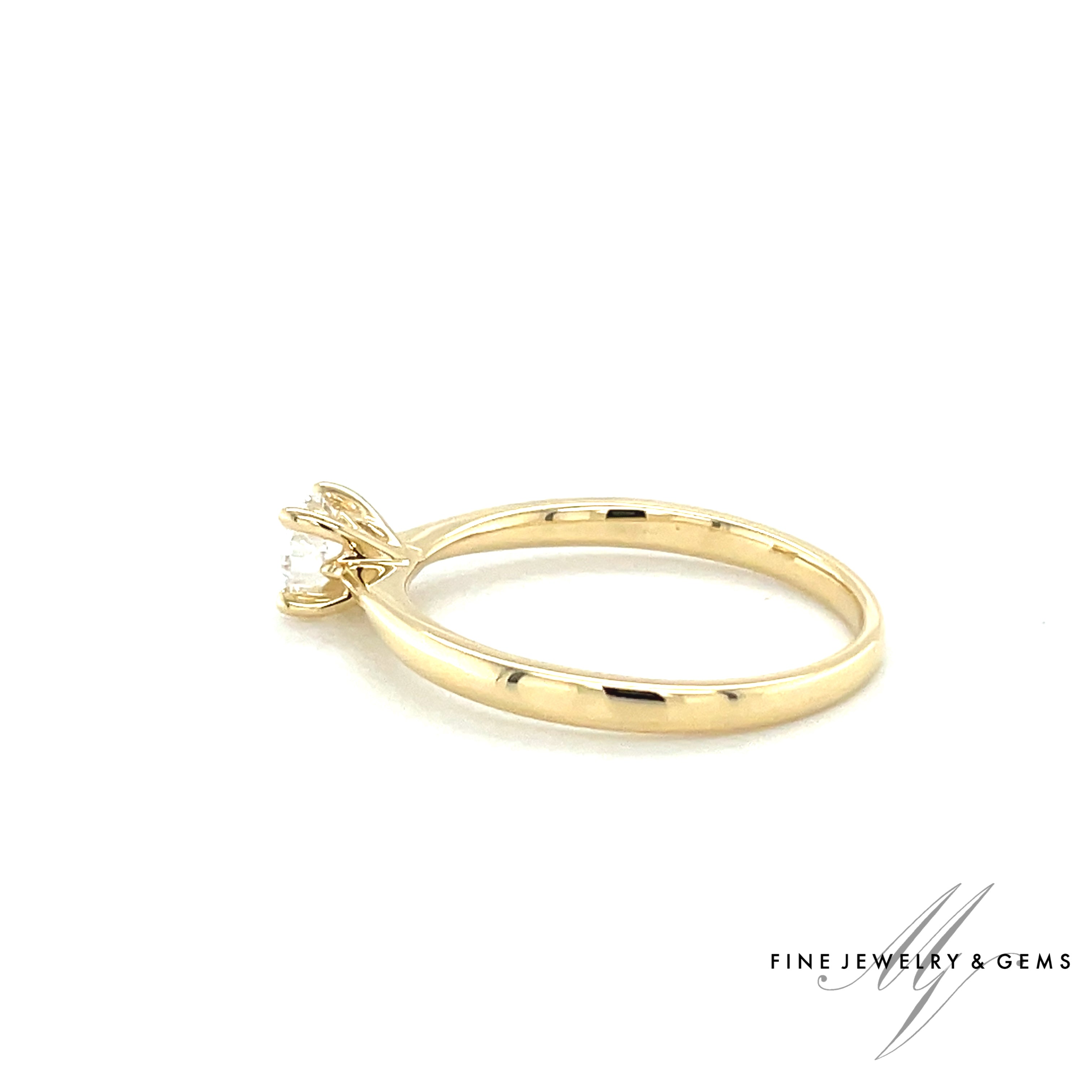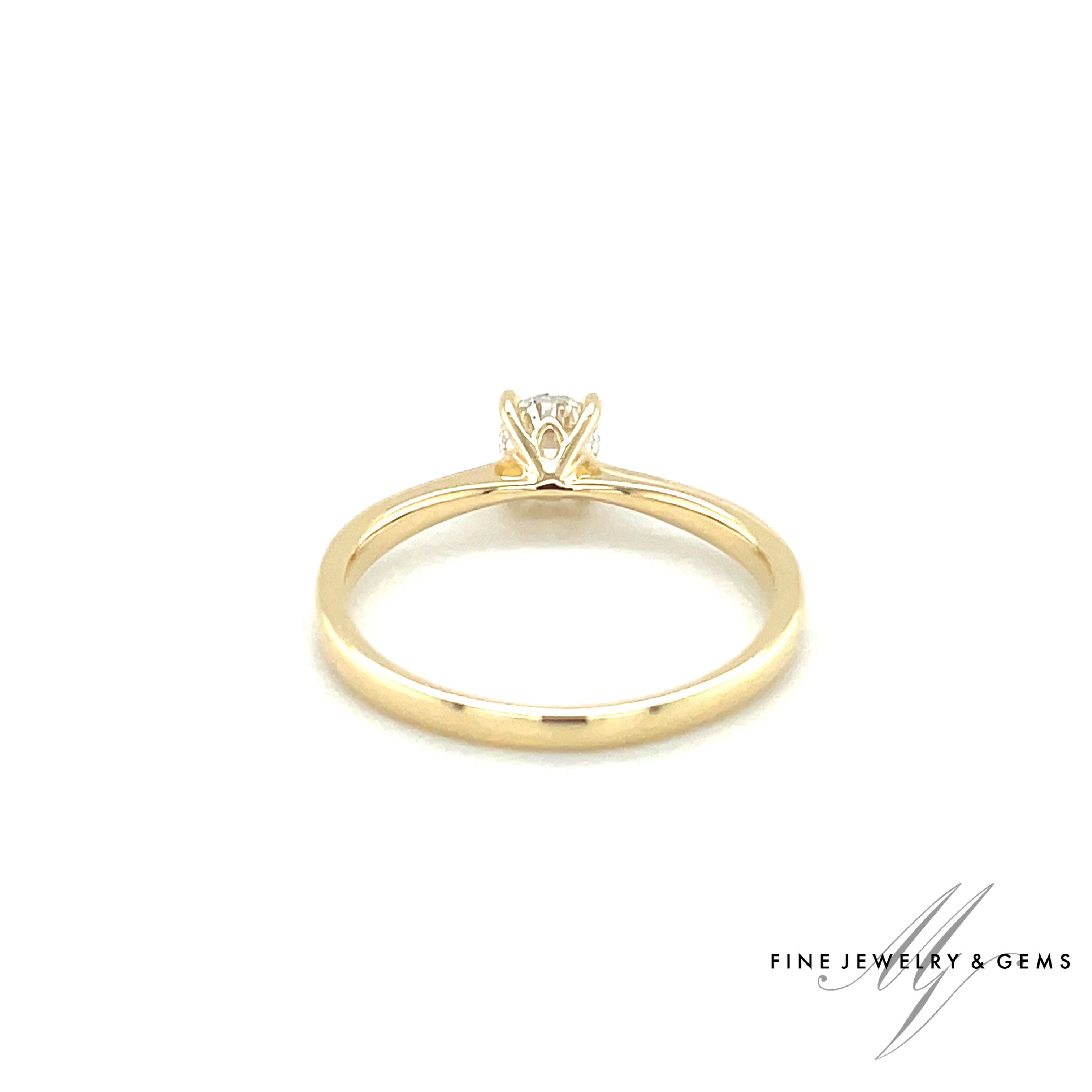 Deze met hand vervaardigde 18kt gouden solitair ring is bezet met een briljant geslepen diamant.