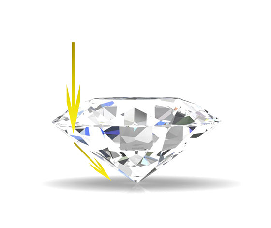大于克拉重量的钻石通常切割得太平,而小于克拉重量的钻石则切割得太深: